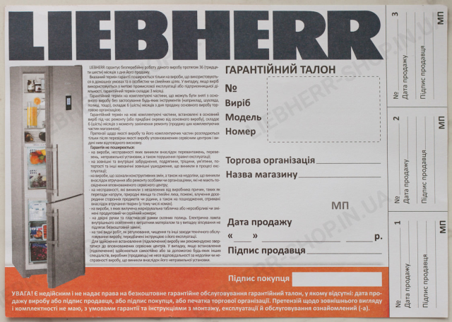 Мы занимаемся послегарантийным обслуживанием техники Liebherr.Гарантия на работу и запчасти 6 мес.Если ваш холодильник находится на гарантии, следует обратиться в представительство компании, предоставив документы, подтверждающие покупку, или отправив запрос на электронную почту.
